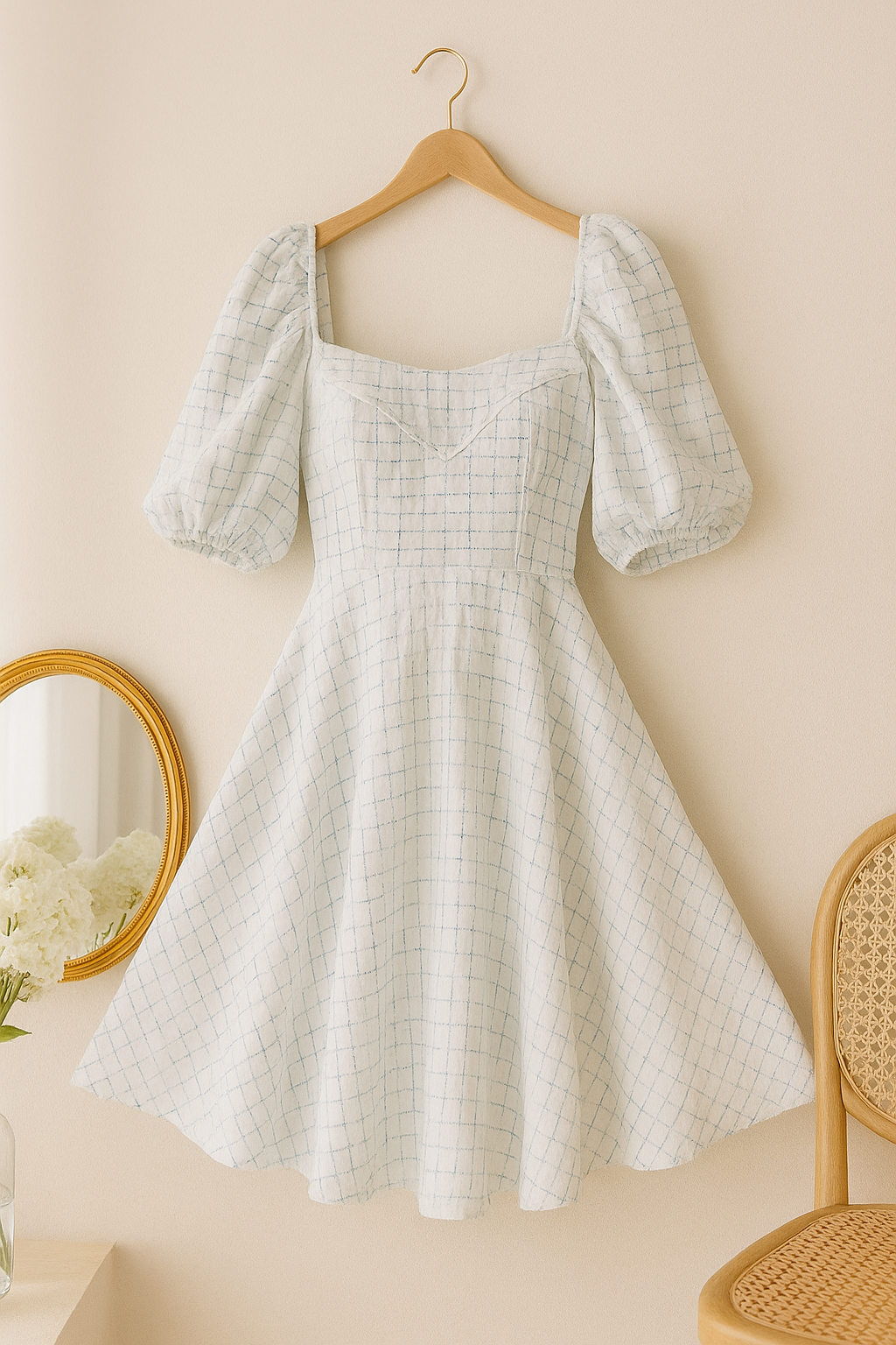 Com modelagem acinturada e mangas levemente bufantes, ele valoriza a silhueta feminina e traz um toque romântico e moderno ao mesmo tempo.