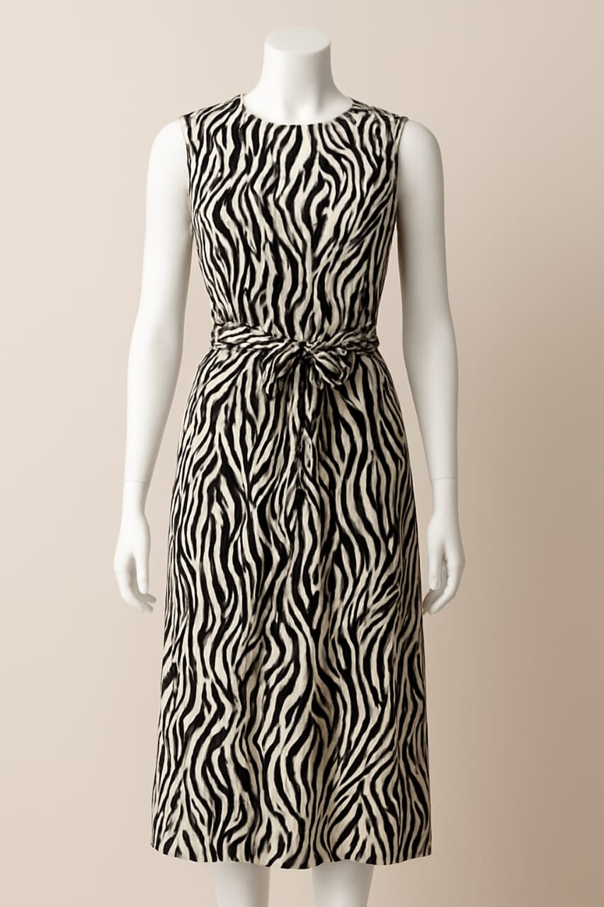 Vestido Feminino Zebra –atemporal e sofisticado, perfeito para produções modernas.